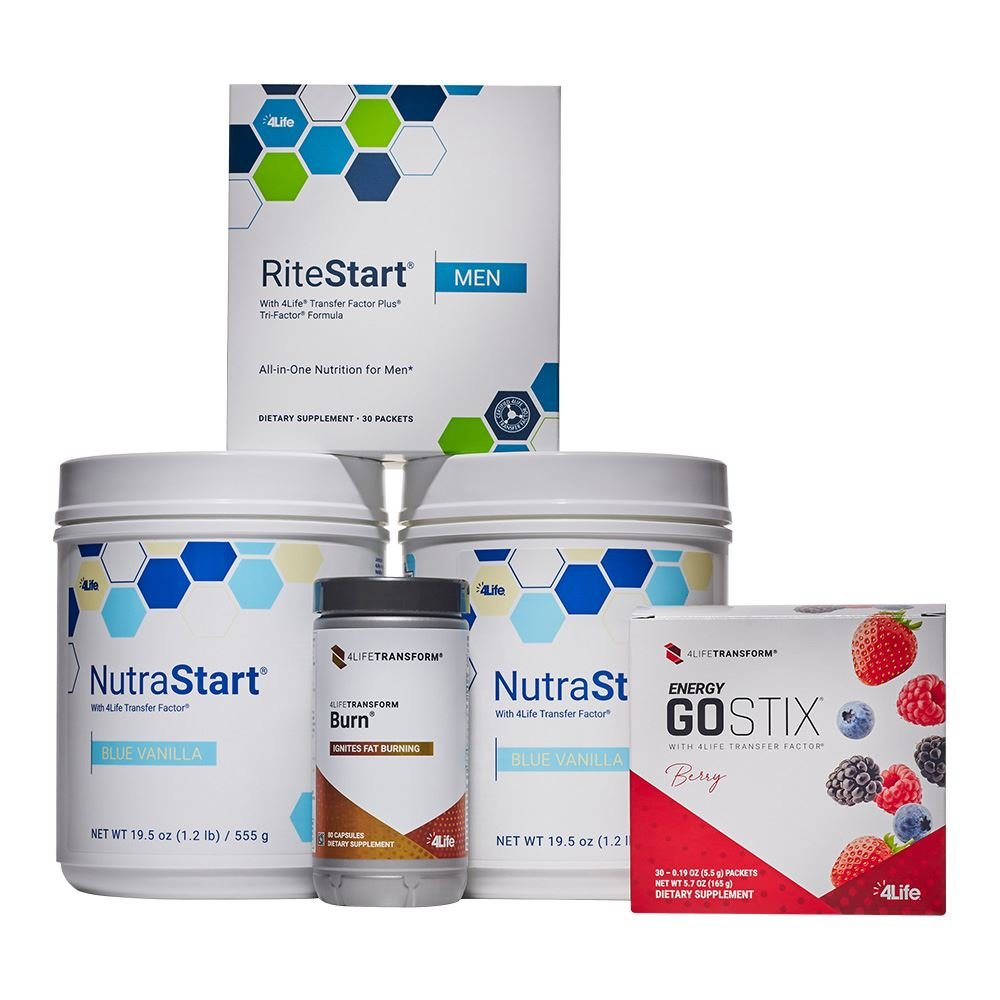 Ponerse en forma es más que una meta, es todo un estilo de vida. El Paquete 4LifeTransform Get Burning ha sido diseñado para fomentar una mejor nutrición a través de tu dieta y los suplementos que la acompañan, motivarte a estar activo e impulsar a tu cuerpo a quemar calorías al máximo. Este combo de productos respalda la nutrición general y además eleva tu metabolismo para que puedas acelerar tus metas de transformación corporal. Si combinas estos productos con actividad física moderada, hidratación adecuada y hábitos alimenticios saludables y flexibles, podrás ver tu figura más esbelta y transformada. Pero para regirte a tu plan y alcanzar tus objetivos es evidente que debes sentirte de lo mejor, por ello hemos incluido productos con el poder de 4Life Transfer Factor® para respaldar tu sistema inmunológico.*