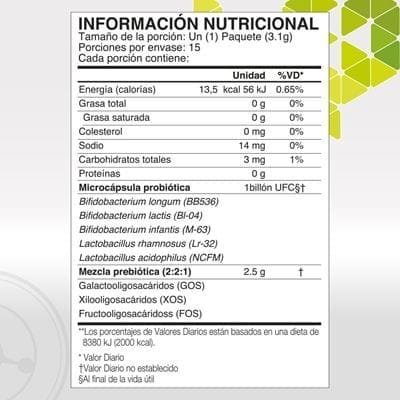 Especificaciones de Pre/Obiotics :