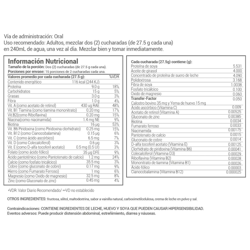 NutraShake complementa la alimentación, no reemplaza una dieta balanceada.